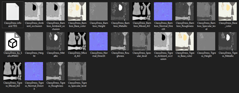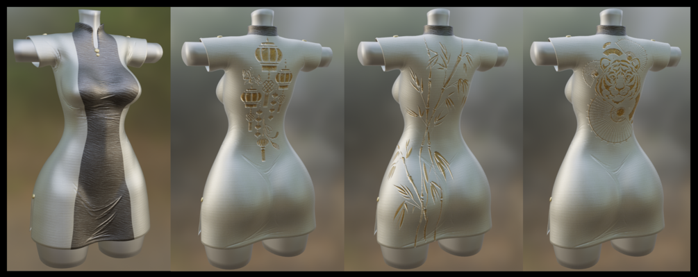 ⇢ 4K PBR textures with maps, 3 different back designs (laterns, tiger and fans, bamboo)