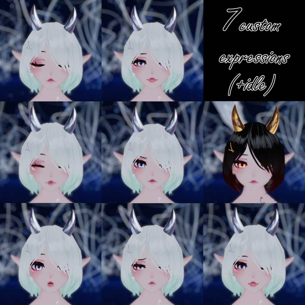 SFW, mesh cut underneath the clothes. SDK 3.0, Unity 2019, 7 custom gestures with write defaults off. Tested in fbt, halfbody and desktop. Two differently colored versions ready to upload.