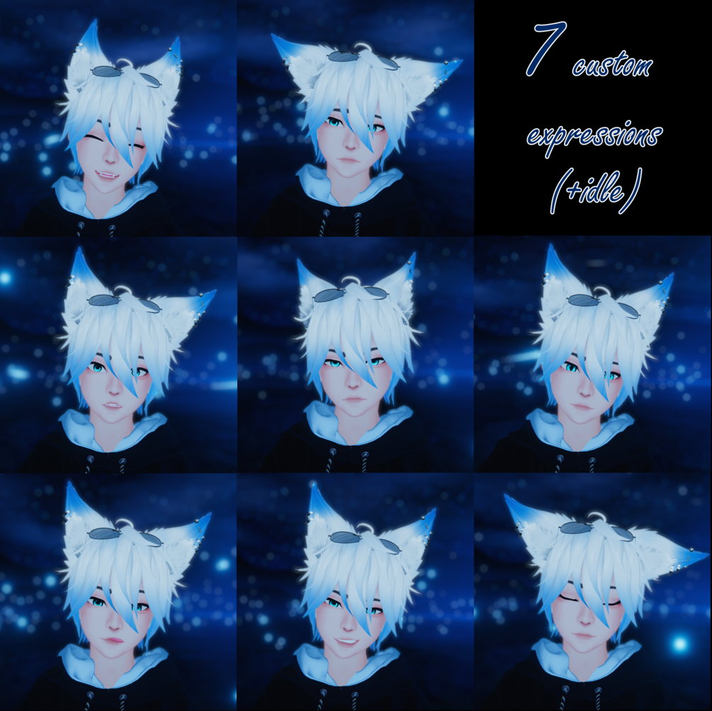 SDK 3.0, Unity 2019, 7 custom gestures with write defaults off. Twistbones. Tested in fbt, halfbody and desktop. Three versions: one with Extra system and one without it and optimized (separate unity packages).