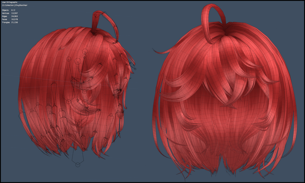 ⇢ Short hair 53 bones Long hair 87 bones, including neck, head and root bones